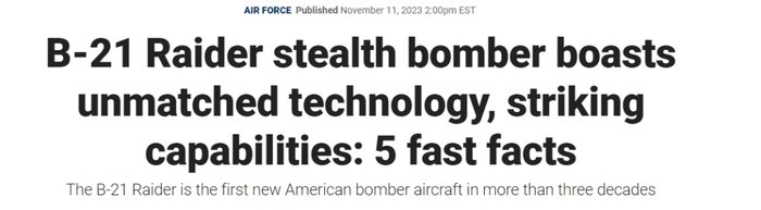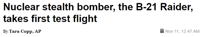 美联社的标题为,核隐身轰炸机B-21首飞,强调“突袭者”的核打击能力。
