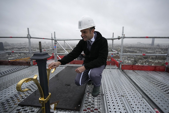 “重建法国形象”!巴黎圣母院重开倒计时一周年,马克龙登上塔尖视察