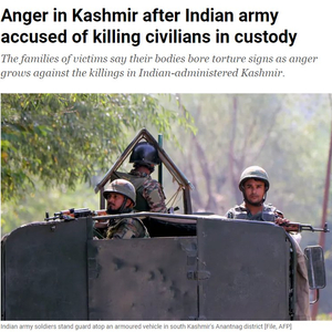 3名克什米尔平民被印军带走后死亡,疑似遭酷刑视频流出后引众怒