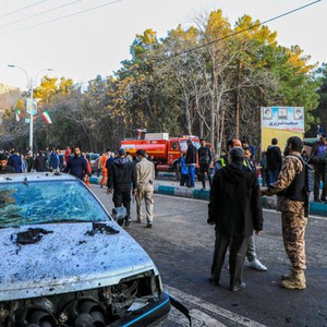 1月3日,伊朗克尔曼市发生两起爆炸事件,救援人员等聚集在爆炸现场。 图自外媒