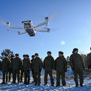 1月18日,俄罗斯东部军区联合军的军人在赤塔的训练场参加无人机训练演习。(视觉中国)