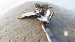 2月20日,疑似被胡塞武装击落的美国MQ-9无人机残骸坠落到也门一处海滩上。新华社发