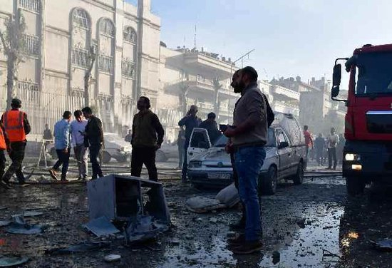 空袭现场。新华社发(阿玛尔摄)