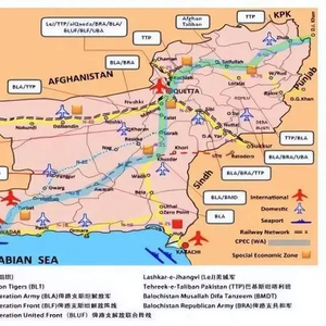 另外还有伊朗,因为伊朗领土也有一大块是俾路支,伊朗的俾路支和巴基斯坦的俾路支可以连成一片。不知你是否记得不久前巴基斯坦和伊朗之间互相轰炸的事,很有意思,实际上双方是商量好的,打击的时候互提抗议、召回大使,打完以后又和好,把大使派回去。
