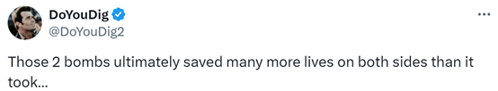 有美国网民说:“比起它们杀害的,这两枚炸弹拯救了双方更多的人。”