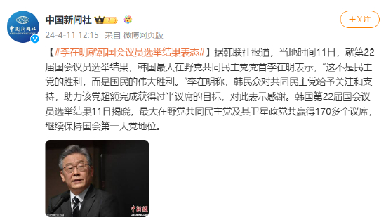 李在明就韩国会议员选举结果表态:这是国民的伟大胜利