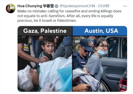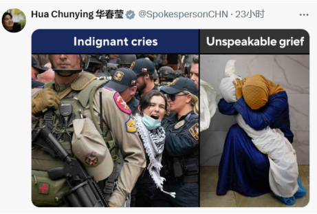 [环球网报道 记者 张晓雅]全美高校爆发声援巴勒斯坦的抗议活动和美国执法人员的强力应对,引发全世界关注。中国外交部部长助理、发言人华春莹4月28日在社交平台X上发布多条图文,并援引美国参议员伯尼·桑德斯的话称,“不要侮辱美国人的智商。不要利用反犹太主义转移注意力。”
