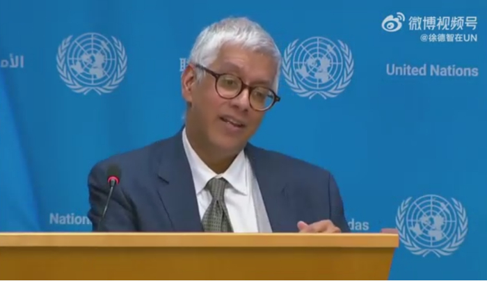 [环球网报道]当地时间5月10日,联大通过涉巴勒斯坦入联决议成为外界焦点,以色列代表甚至做出在联合国大会上现场“粉碎《联合国宪章》”的惊人举动。据央视记者徐德智社交媒体上发布的信息,联大会后,联合国秘书长副发言人法尔汉•哈克在记者会上回应提问时称,不会对各国代表举动具体置评,但联合国这一组织遵守的前提就是对《联合国宪章》的尊重。被追问下,法尔汉还表示,他“在联合国很长时间了,看了太多了”。