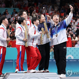巴黎奥运会乒乓球混双前三名使用三星手机自拍。冠军是中国组合王楚钦/孙颖莎,朝鲜组合李正植/金琴英获得亚军,韩国组合林钟勋/申裕斌获得季军韩联社