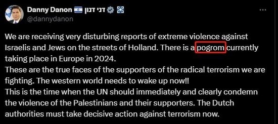 以色列国家安全部部长、极右翼人士本-格维尔在社交媒体上发帖称,“去看球赛的球迷遭遇了反犹主义,受到了难以想象的残酷袭击”。