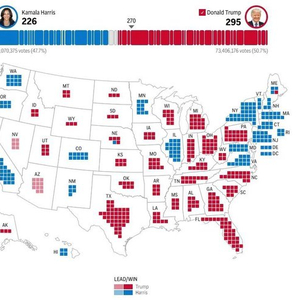 据美联社的选举测算,截至发稿时,佐治亚州、北卡罗来纳州、宾夕法尼亚州、密歇根州和威斯康星州五大摇摆州都已“翻红”,被特朗普拿下。此外,特朗普在亚利桑那州和内华达州两州的得票数也领先哈里斯。