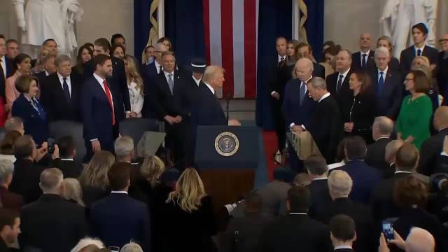特朗普宣誓完毕正式就职美国总统 现场响起礼炮