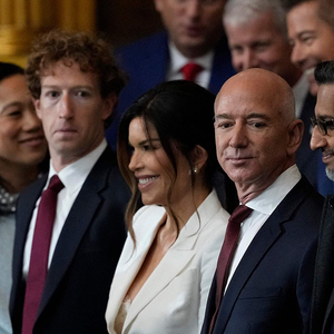 当地时间2025年1月20日,美国华盛顿特区,美国国会大厦圆形大厅,马克·扎克伯格、杰夫·贝索斯、桑达尔·皮查伊和马斯克等出席美国总统就职典礼。视觉中国 图