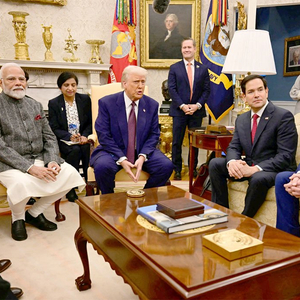 特朗普13日在椭圆形办公室会见莫迪时,门外墙上的“嫌犯大头照”引起美媒关注。 《纽约邮报》