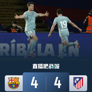 下半场伤停补时4分钟,全场比赛结束,最终巴萨4-4马竞。