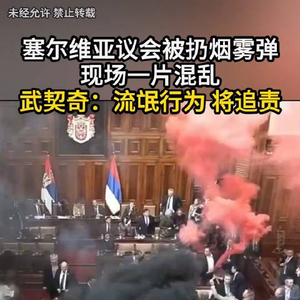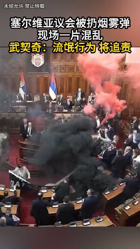【#塞尔维亚议会被扔烟雾弹# 现场一片混乱 武契奇:流氓行为 将追责】据路透社报道,3月4日塞尔维亚议会会议期间,反对派议员投掷烟雾弹表达抗议,现场陷入混乱,有议员受伤。塞尔维亚总统武契奇对此批评称,这是“流氓行为”,塞尔维亚政府将追究所有涉事议员的责任。