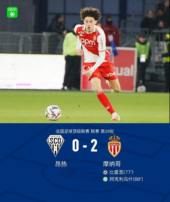 在法国足球顶级联赛第26轮的一场比赛中,摩纳哥客场挑战昂热。比赛中,摩纳哥展现了出色的进攻能力。比雷思接队友卡约-恩里克的助攻为球队打破僵局,随后阿克利乌什通过点球机会再下一城,帮助球队锁定胜局。最终,摩纳哥以2-0的比分战胜昂热,全取三分。