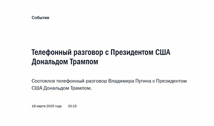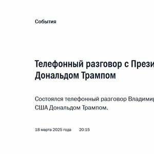 据塔斯社报道,俄罗斯总统网站18日公布了普京与特朗普通话的内容。以下为全文: