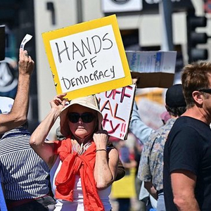 在洛杉矶,近万名抗议者举行活动,抗议人群绵延数个街区。南加州抗议活动组织者埃米莉·威廉姆斯接受采访时说,“特朗普的混乱”才刚刚开始两个月,国家就因他的鲁莽计划陷入困境。