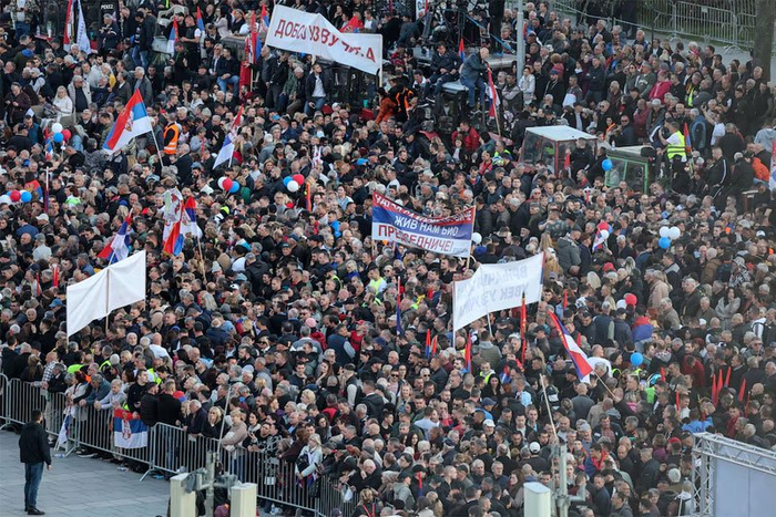 近段时间以来,塞尔维亚政治局势出现波动。当地时间3月15日,贝尔格莱德爆发针对政府的大规模示威活动,抗议者抨击政府“腐败无能”,对去年11月造成15人死亡的火车站坍塌事故表示不满。塞政府方面预计约有8.8万至10.7万人参与抗议,英国广播公司(BBC)则称实际人数可能达32.5万人。
