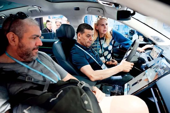 4月15日,广东广州市,在137届广交会新能源汽车及智慧出行展区,采购商体验一款新能源汽车。摄影/本刊记者 陈楚红