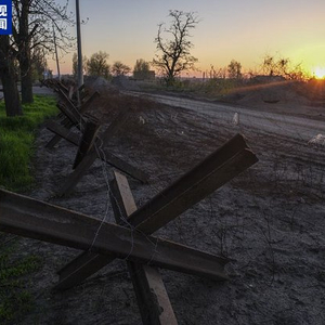 当地时间4月19日,顿涅茨克地区康斯坦丁诺夫卡的防御工事。