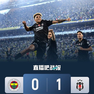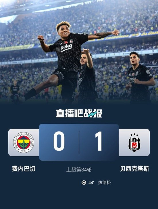 全场比赛结束,费内巴切0-1遭贝西克塔斯赛季双杀。