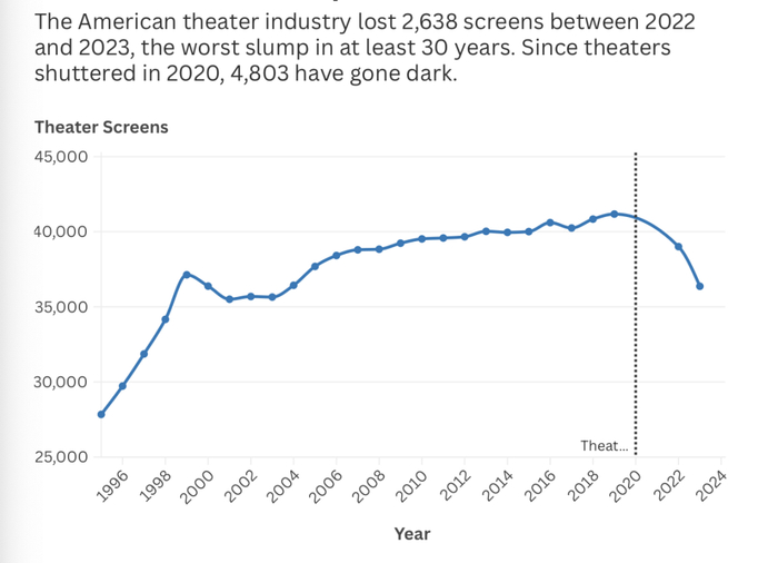 ||2022年至2023年间,美国影院损失了2638块银幕,这个趋势还在延续。