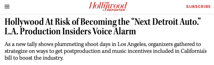 为此,加州正在研究如何采取激励措施和补贴措施推动这些产业回归,这恐怕才是恢复电影工业的良策。
