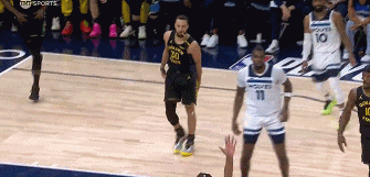 库里投进三分之后腿筋开始不舒服,带伤抛投打进,随后再坚持一回合之后,库里被换下。