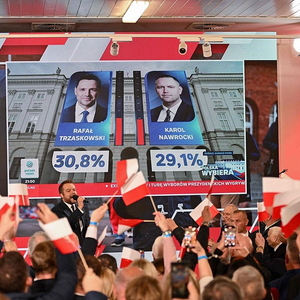 △当地时间2025年5月18日,波兰总统选举首轮初步出口民调结果公布。(图自视觉中国)