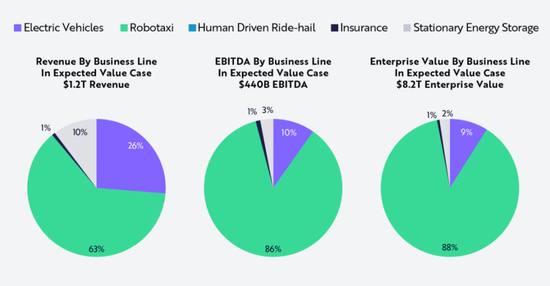 方舟基金预测,2029年特斯拉近九成企业价值和收益将来自Robotaxi