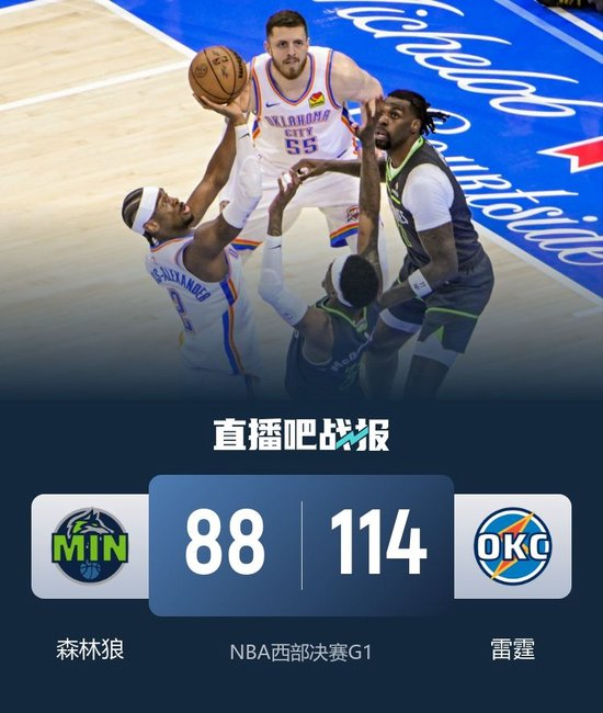 直播吧5月21日讯 NBA季后赛西部决赛今日正式开打,雷霆坐镇主场迎来和森林狼的G1之战。西部半决赛对决雷霆通过抢七击败掘金艰苦晋级,森林狼则以4-1的绅士横扫淘汰勇士。