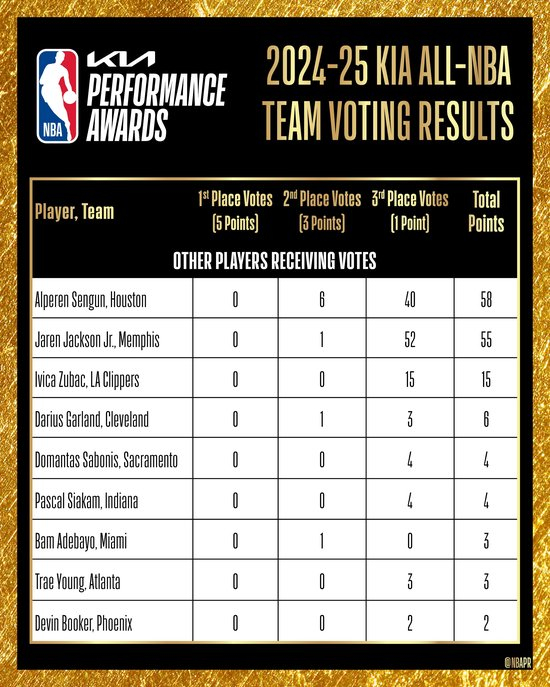 直播吧05月24日讯 NBA官方公布2024-25赛季最佳阵容,其中二阵如下: