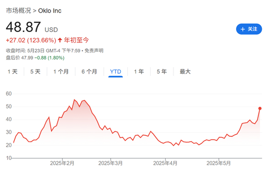 受此影响,5月23日,全球铀价ETF(URA)涨11.61%。美股核能板块多家公司股价也迎来大涨,其中,Lightbridge大涨近43%,NANO Nuclear Energy涨超30%,Oklo涨超23%,Centrus Energy涨超21%,Energy Fuels涨20%,Cameco涨超11%。