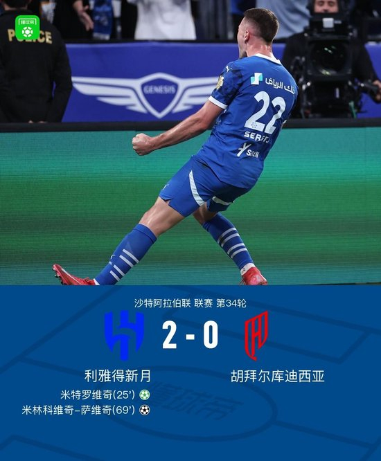 北京时间5月27日,沙特阿拉伯联联赛第34轮,利雅得新月主场迎战胡拜尔库迪西亚。比赛中,利雅得新月凭借米特罗维奇罚入的点球取得领先,随后米林科维奇-萨维奇接萨勒姆-达瓦萨里助攻再下一城。最终,利雅得新月以2-0战胜胡拜尔库迪西亚。
