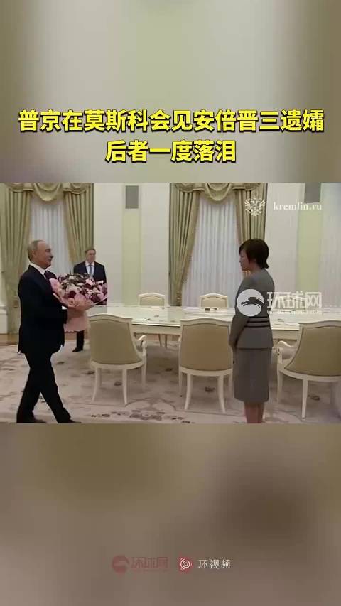 [环球网报道]据日本《读卖新闻》、俄罗斯塔斯社报道,俄罗斯总统普京当地时间5月29日在莫斯科会见了已故日本前首相安倍晋三的遗孀安倍昭惠。普京对安倍昭惠说,俄罗斯不会忘记安倍晋三“对俄日关系的发展做出的贡献”。会谈开始时,普京向安倍昭惠送上一束鲜花。安倍昭惠在会谈过程中哽咽落泪。