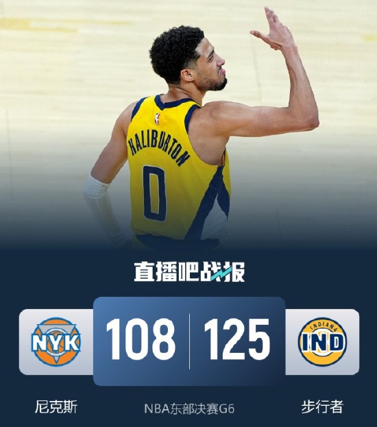 西卡31+5 哈利伯顿21+6+13 步行者4-2尼克斯杀入总决赛