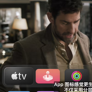 tvOS 26 主要引入了全新玻璃质感界面,同时更新了 Apple TV App,主要在界面质感方面有较大改进,号称“画面能够以折射效果呈现”,涉及播放控件、控制中心等。