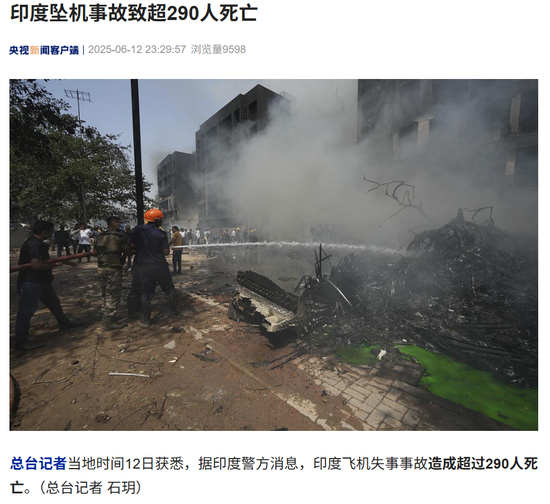 据央视新闻最新报道,据印度警方消息,印度飞机失事事故造成超过290人死亡。