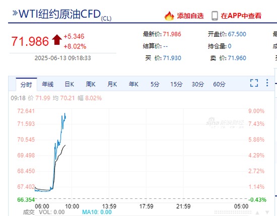 WTI原油期货涨幅超8%,截至发稿报71.986美元/桶。
