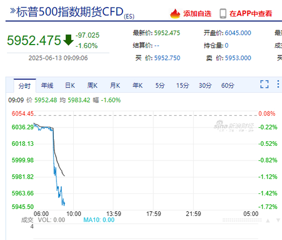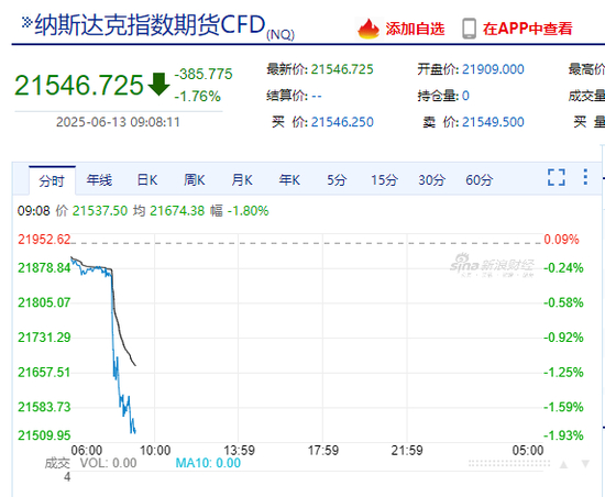 美股股指期货跳水,截至发稿,纳指期货现跌1.76%,标普500指数期货跌1.6%,道指期货跌1.39%。