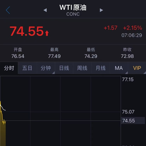 16日亚盘,WTI原油期货周一高开逾6%后回落,现报74.55美元/桶。