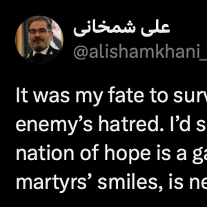 沙姆哈尼在其个人社交媒体上发文称,命运让他带伤而活,愿为伊朗人民奉献出自己的生命。