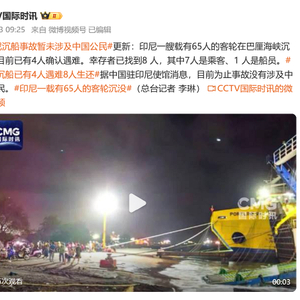印尼沉船已有4人遇难8人生还 暂未涉及中国公民 央视 07月03日09:26 关注 听新闻 印尼一艘载有65人的客轮在巴厘海峡沉没。目前已有4人确认遇难。幸存者已找到8 人,其中7人是乘客、1 人是船员。据中国驻印尼使馆消息,目前为止事故没有涉及中国公民。(总台记者 李琳)