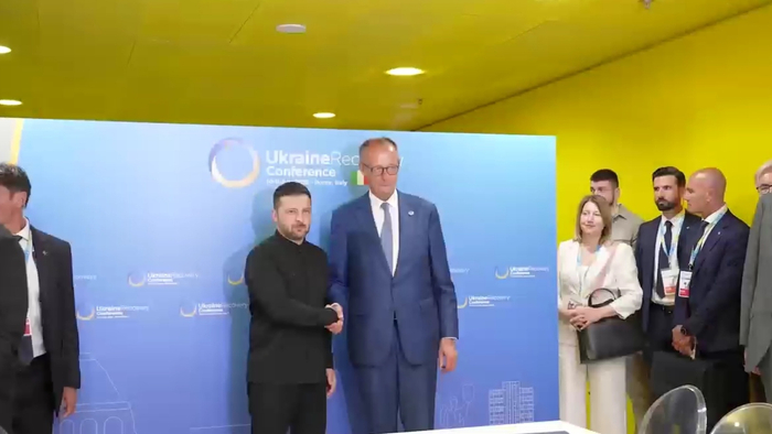 当地时间10日,乌克兰总统泽连斯基在意大利罗马同德国总理默茨举行会谈。