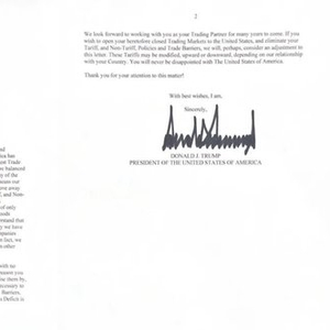 信中措辞与过去一周发给其他国家领导人的信基本一致,包括警告对方不要对此次加税进行报复、鼓励对方企业迁入美国、如对方积极配合可能对税率进行调整等。(此前报道:“点名”14国,最高税率40%!特朗普又动手)