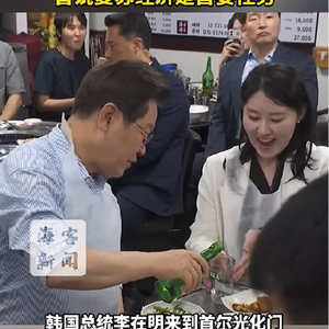 李在明下馆子吃烤五花肉 给身边人轮番倒酒 曾说复苏经济是首要任务