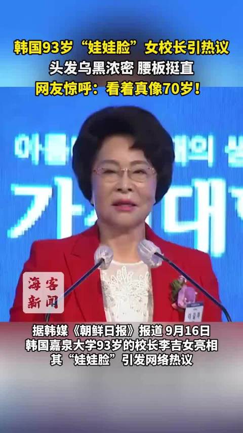 韩国93岁娃娃脸女校长引热议,头发乌黑浓密、腰板挺直,网友惊呼:看着真像70岁!