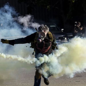 9月26日,在位于美国芝加哥西郊布罗德维尤市的移民与海关执法局办事机构外,抗议者在冲突中将执法人员发射的催泪弹瓶扔回。新华社发(文森特·约翰逊摄)